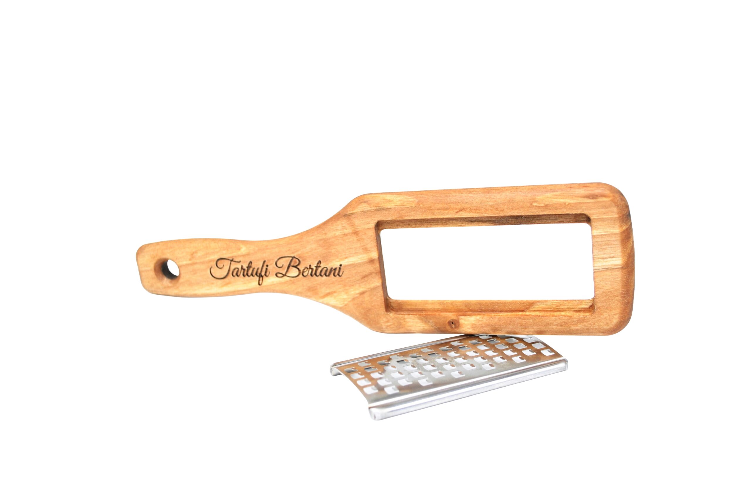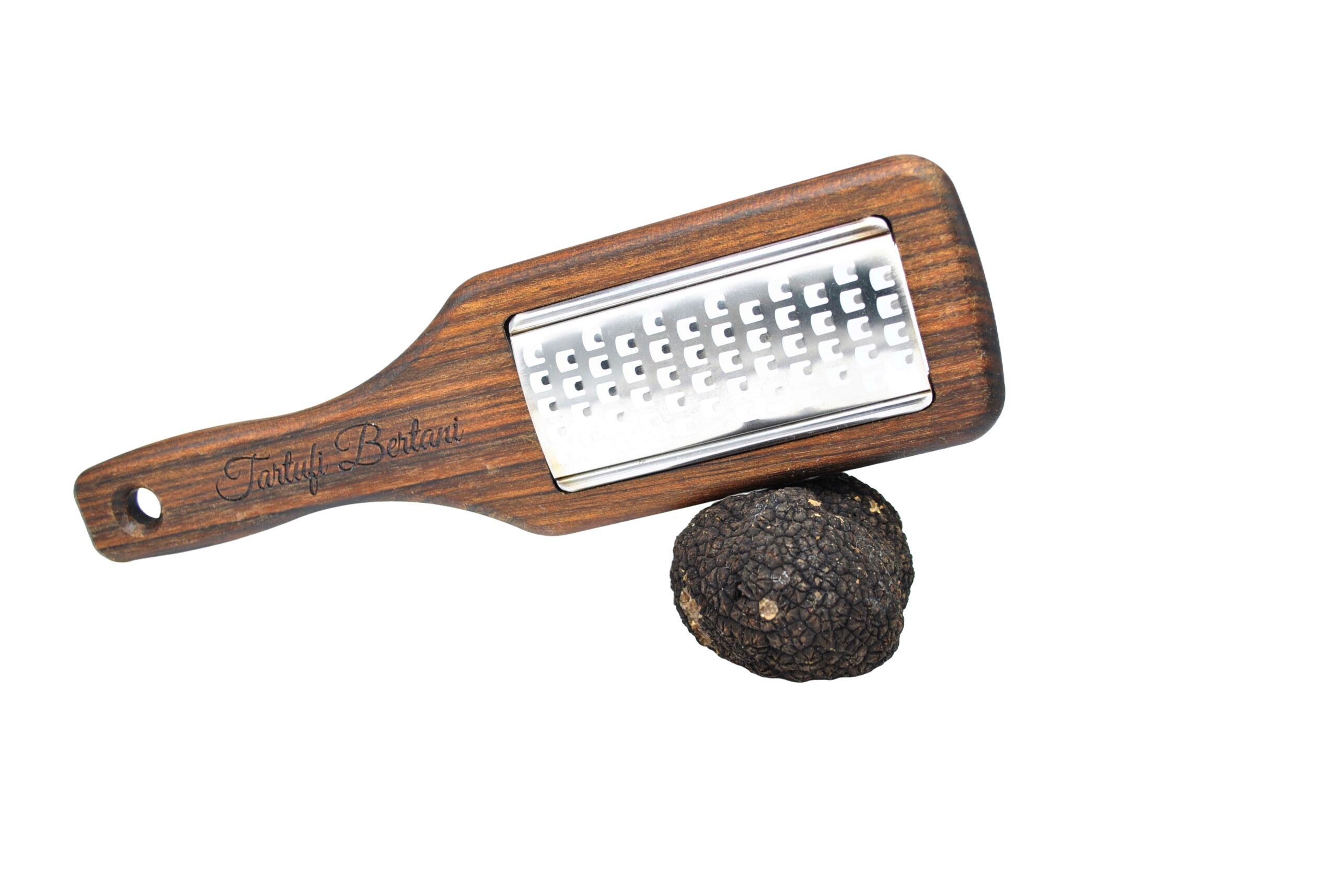 Con la lama in acciaio inox e manico in legno massello, la nostra grattugia offre un taglio preciso e senza sbavature, perfetto per valorizzare al massimo il tartufo.